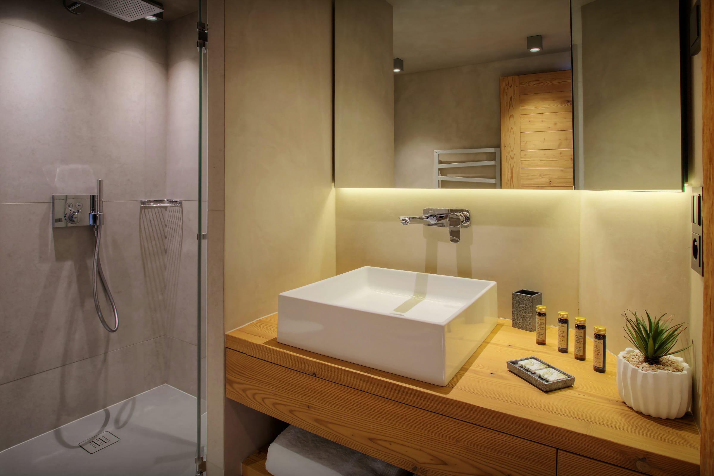 Dieses luxuriöse Chalet ist ein Neubau mit einer Gesamtfläche von 245 m² und wurde mit Liebe zum Detail entworfen, um allen maximalen Komfort zu bieten.