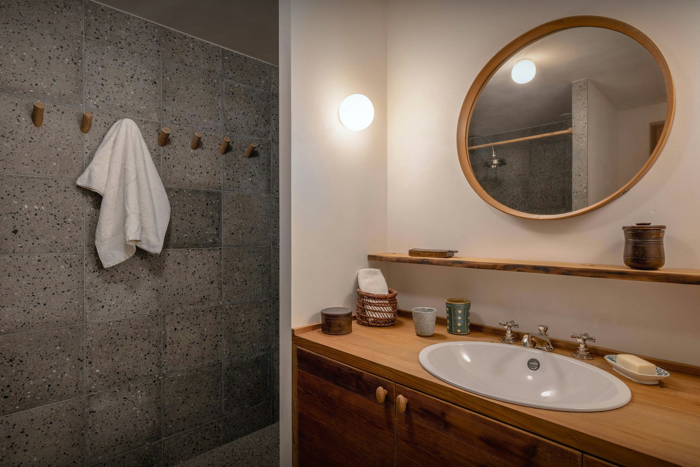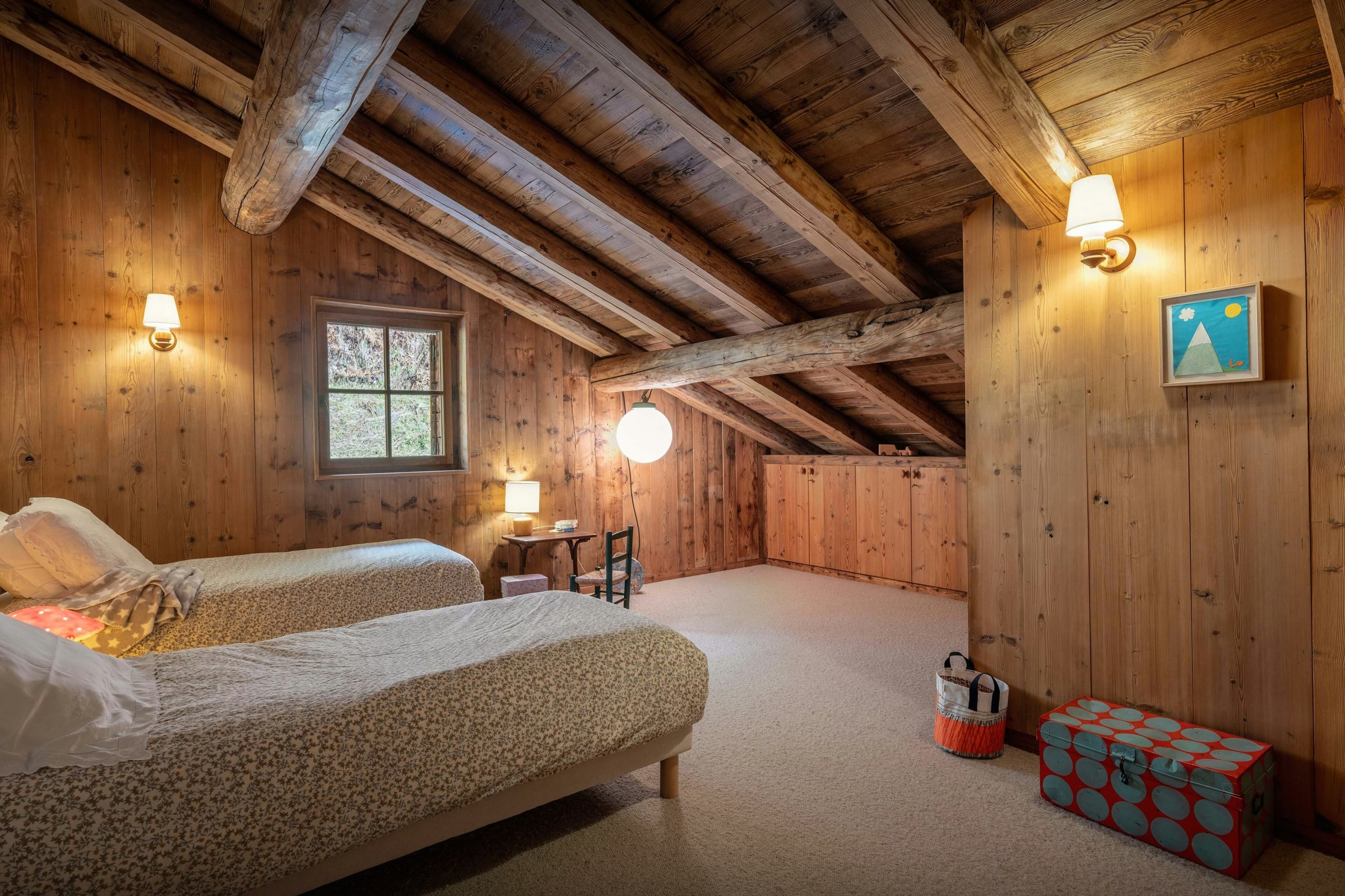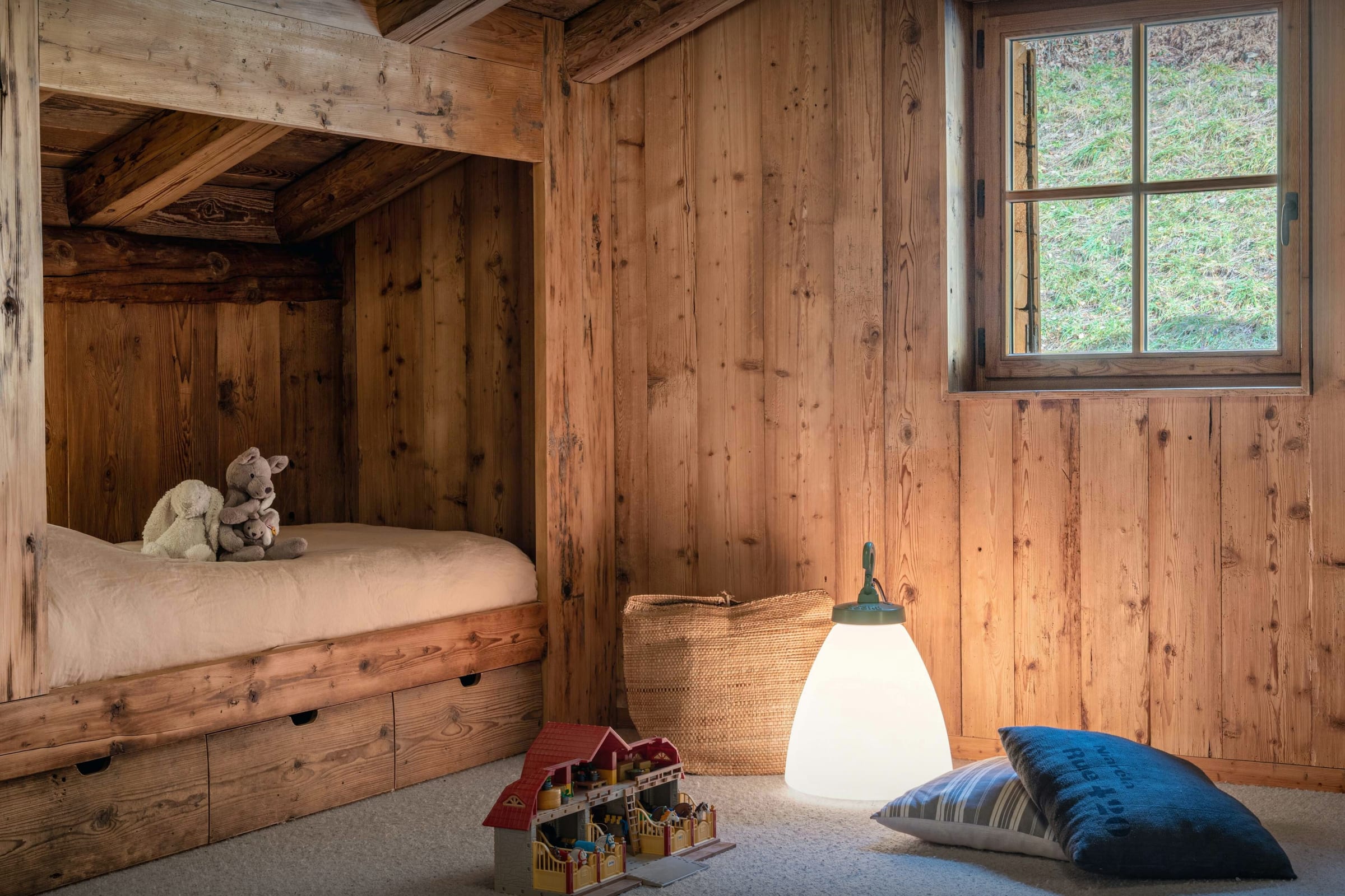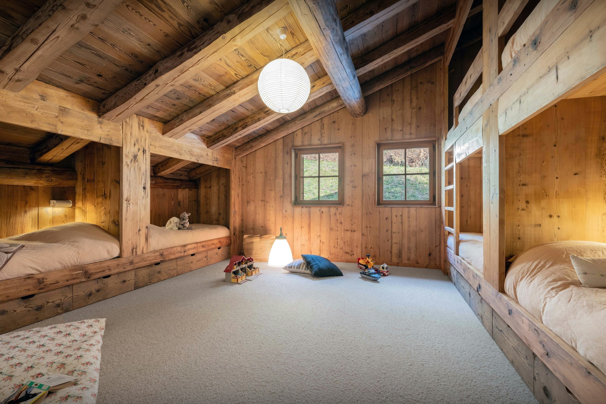 Im Schlafbereich bieten Doppelzimmer und ein Zweibettzimmer Paaren und Freunden Privatsphäre, während der Schlafsaal Kindern gemeinsame Erlebnisse ermöglicht. Mehrere Badezimmer erleichtern das Zusammenleben in Gruppen.