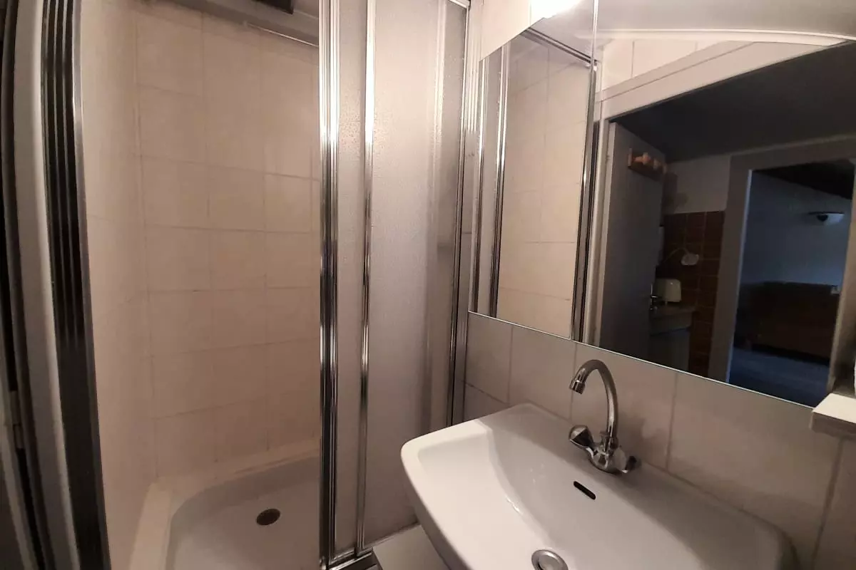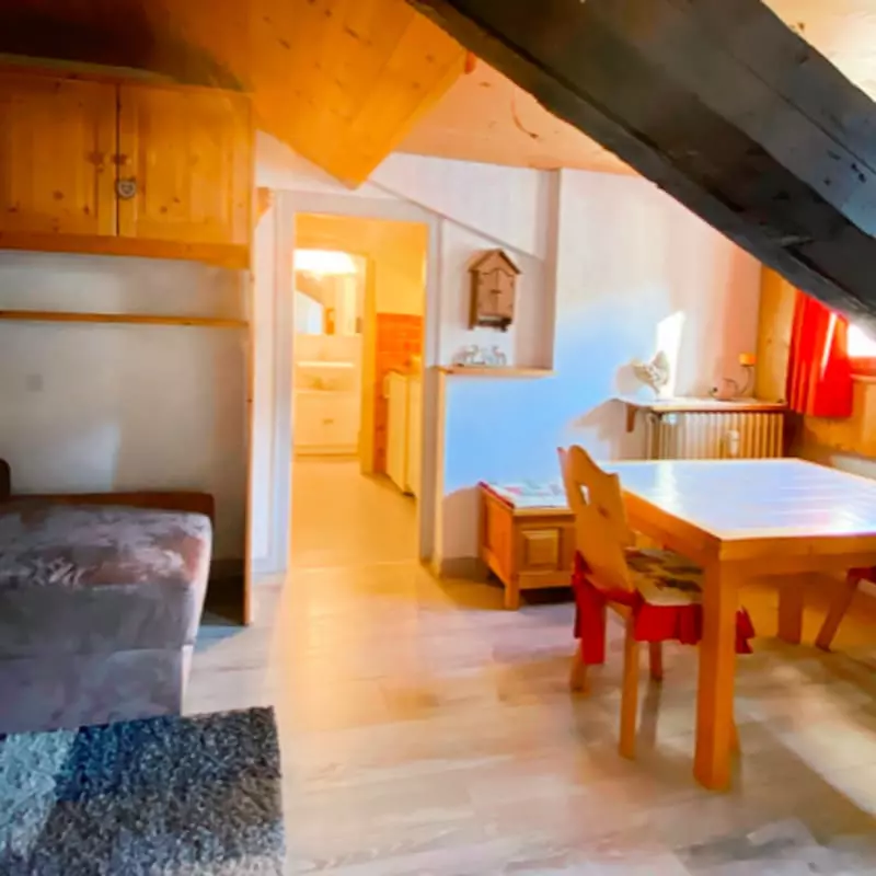 Das ** bewertete Dachstudio befindet sich im obersten und 4. Stock (Lift bis 3. Stock) eines Gebäudes im Herzen des Dorfes neben der Kirche. Es ist 23 m² groß und beinhaltet: