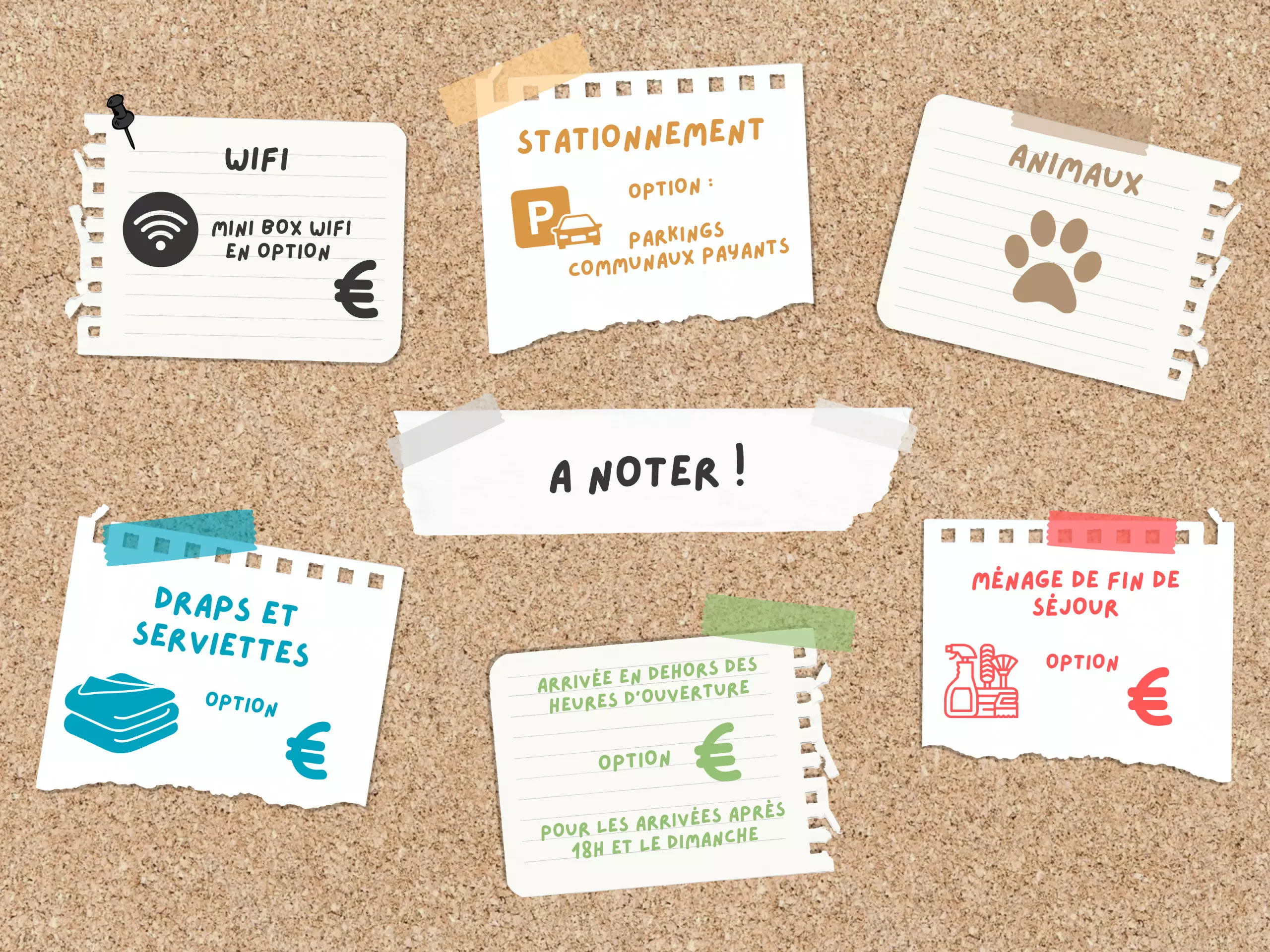 - Vermietung von Bettwäsche, Kissenbezügen, Handtüchern, Badematten, Geschirrtüchern: 20 Tage vor der Ankunft per E-Mail zur Bestellung der Bettwäsche (Bestellung muss spätestens 10 Tage vor der Ankunft erfolgen).