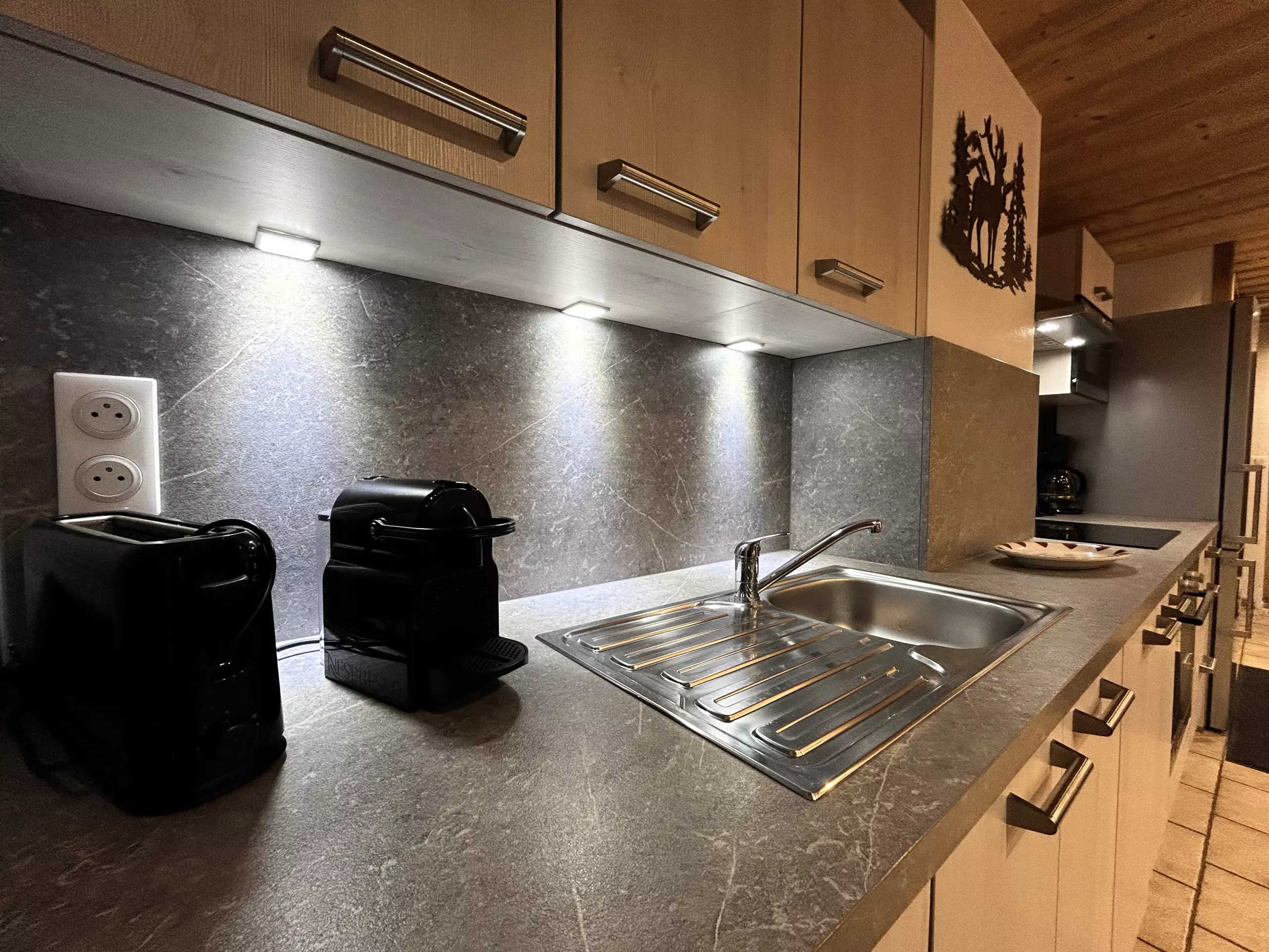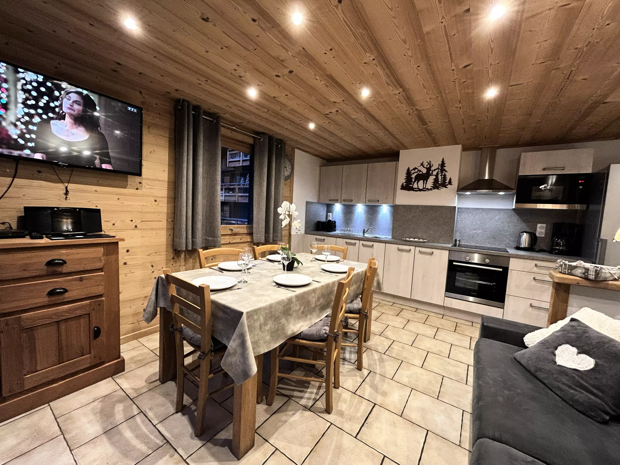 Die 2016 renovierte Wohnung befindet sich in einer Wohnanlage mit nur sieben Einheiten im Zentrum von La Clusaz, in unmittelbarer Nähe zu Geschäften. Die Skilifte Crêt du Merle sind 450 m und Bossonnet 600 m entfernt. Eine Shuttlebus-Haltestelle befindet sich 150 m entfernt.
